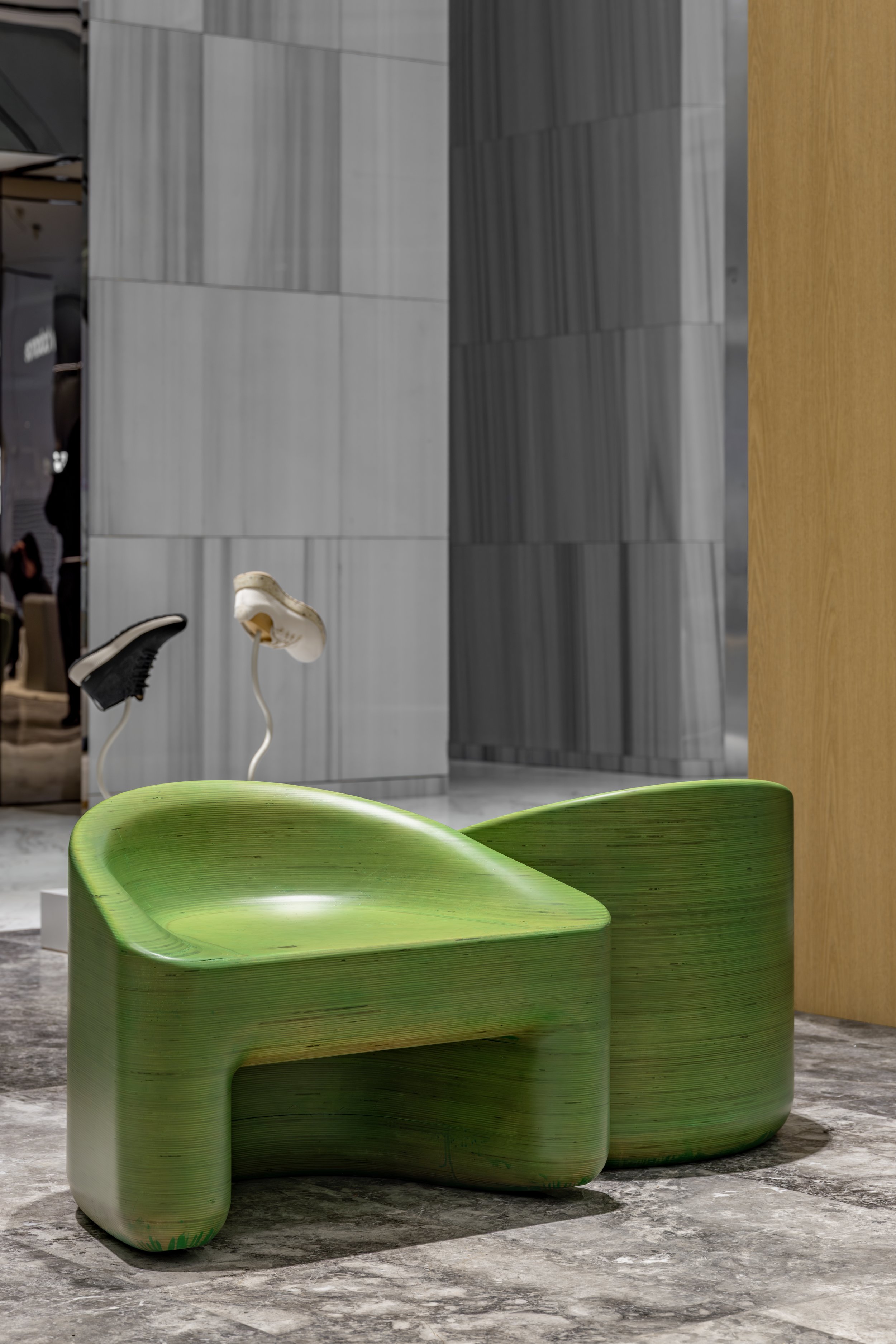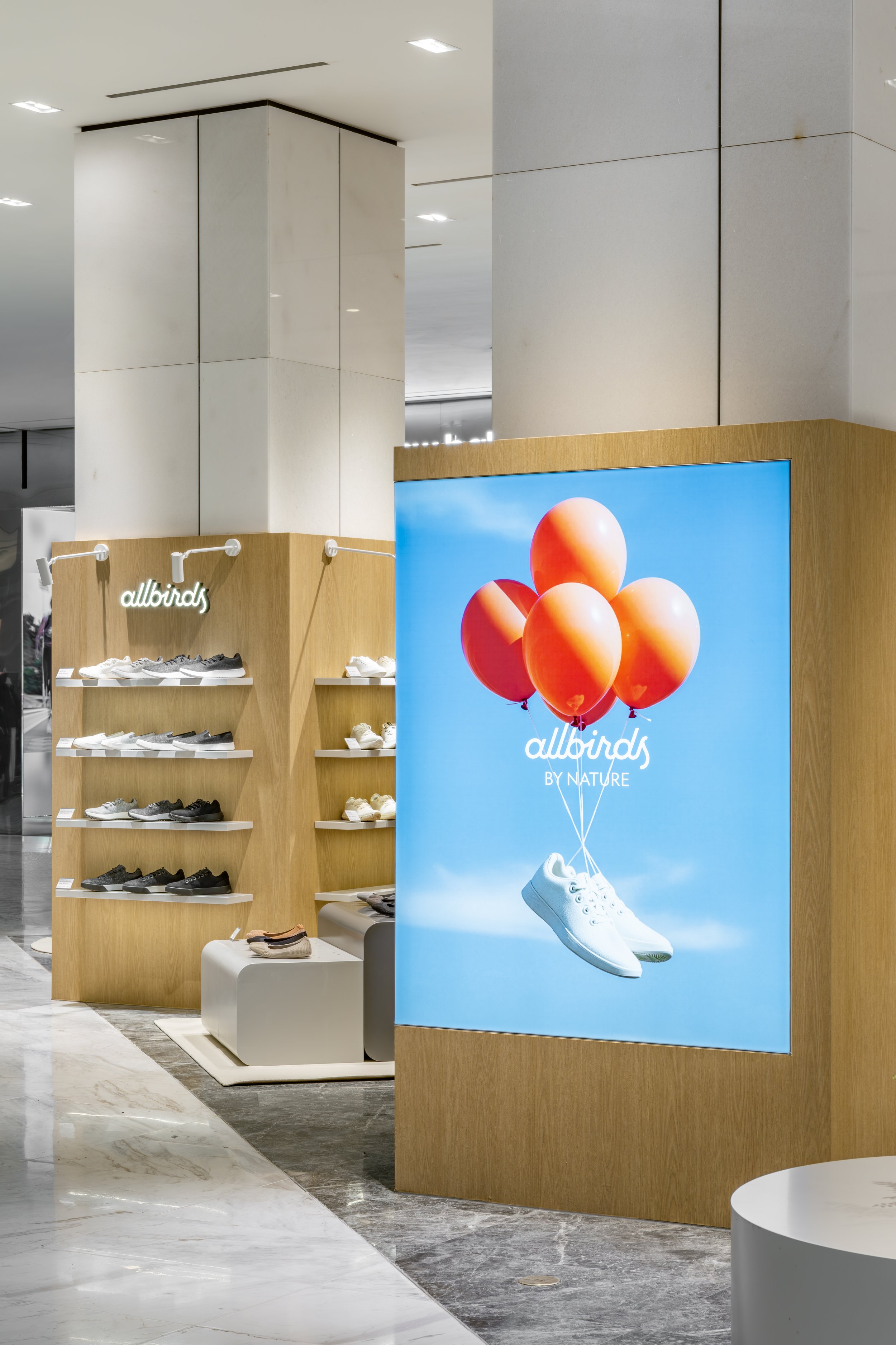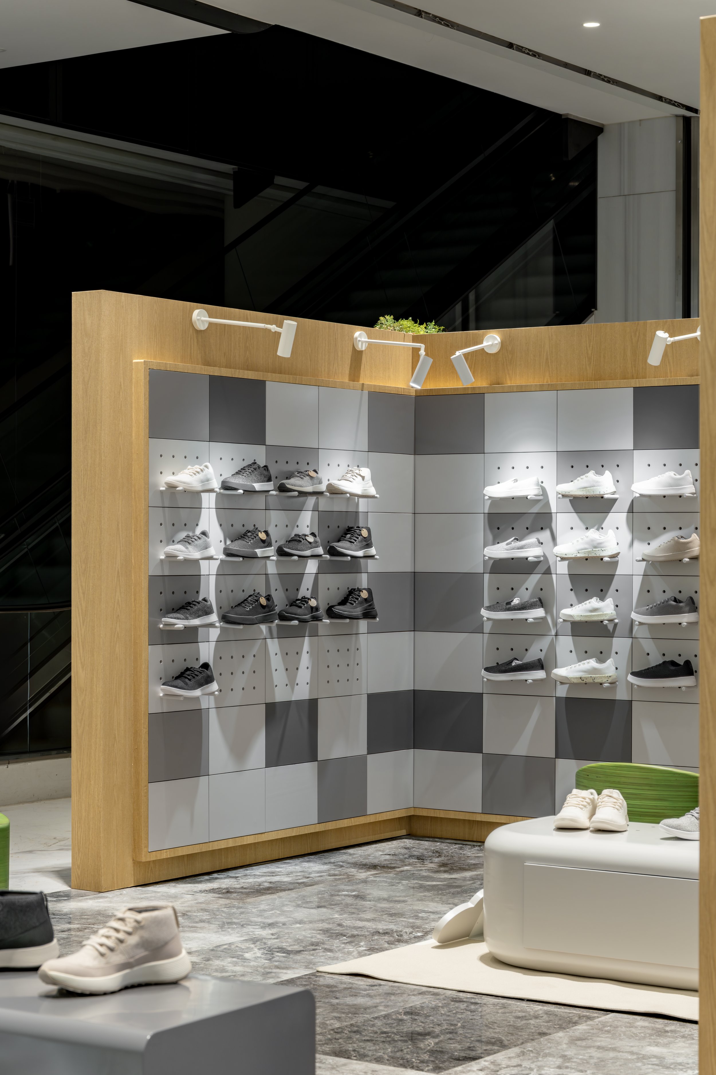 This approach delicately reflects Allbirds’ philosophy of sustainability across the entire store, offering visitors a quiet moment to connect with the brand’s values and story.