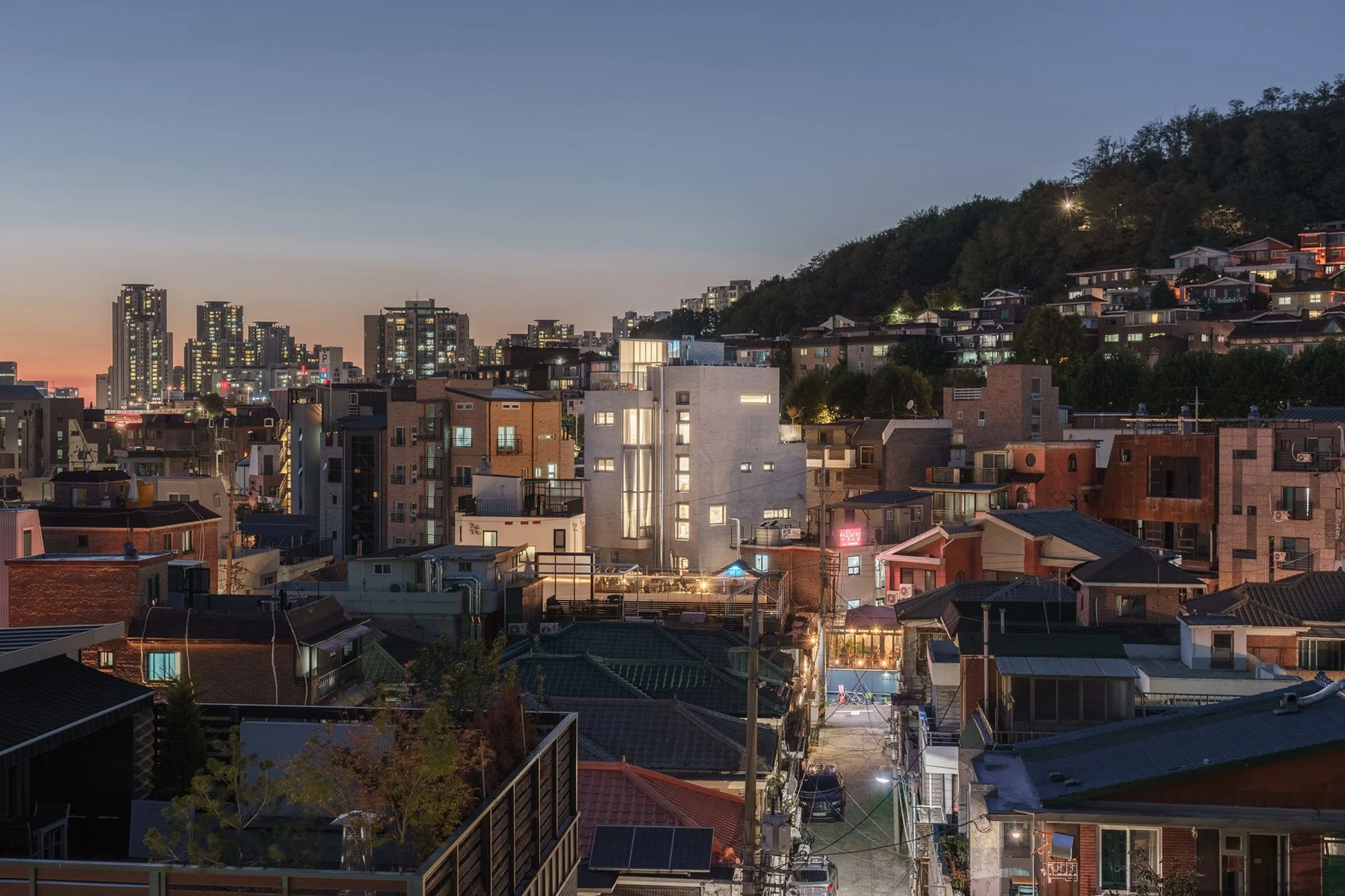 A type of duplex house once became popular in the areas surrounding Seoul, commonly referred to as the “peanut house.” In this model, two homeowners jointly own a single plot of land and build two houses sharing a party wall, while also sharing the yard. As this concept became widely known, quite a number of people built homes in a similar manner. The idea for the “Be Here Now” project emerged from observing this phenomenon.