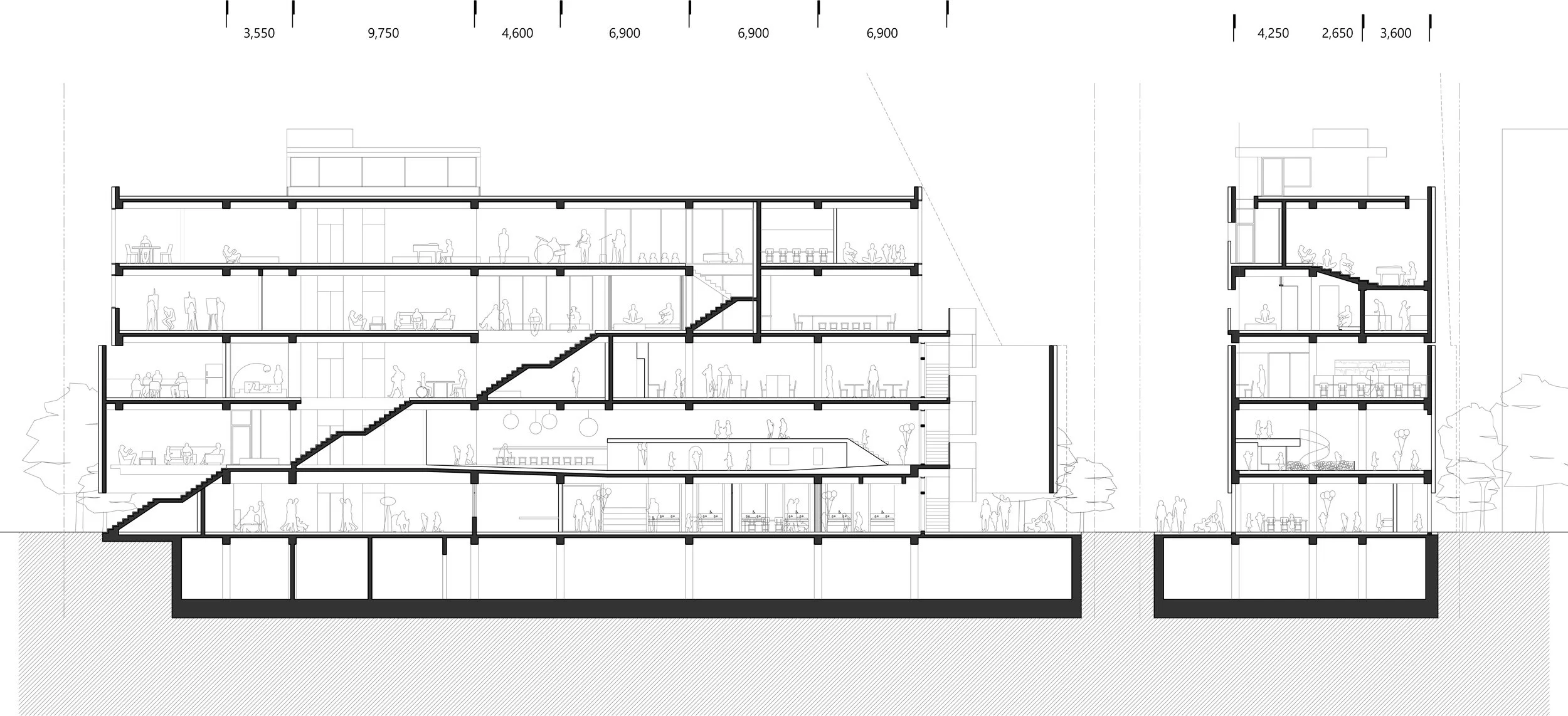 우리는 공공성과 프라이버시, 접근성과 분리라는 상충하는 요소들을 균형 있게 고려합니다. 보육, 노인 공간은 충돌 없는 동선을 확보하여 각자의 영역을 보장하지만, 그 사이를 잇는 구조적 질서는 단순한 기술적 해법이 아니라 건축적 언어로 작동합니다. 반복되는 기둥과 보의 리듬, 비례를 기반으로 한 단면은 공간을 지탱하는 동시에 세대를 잇는 건축적 질서를 드러냅니다.